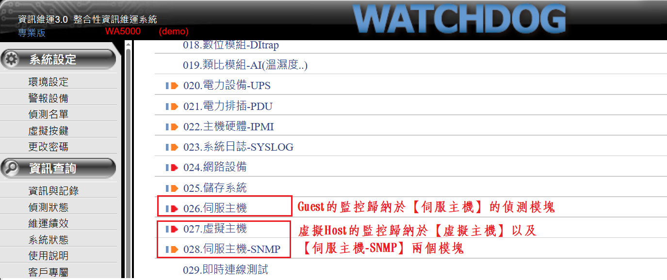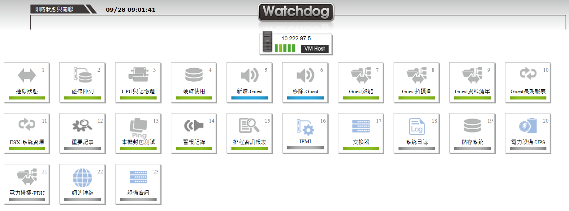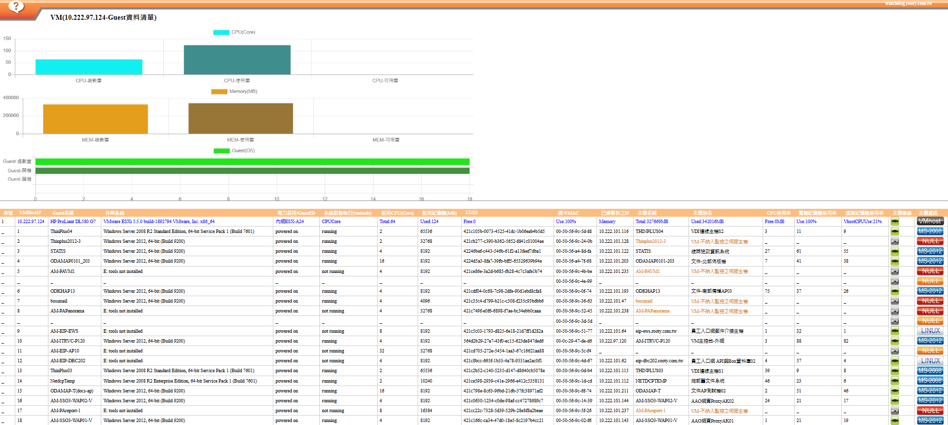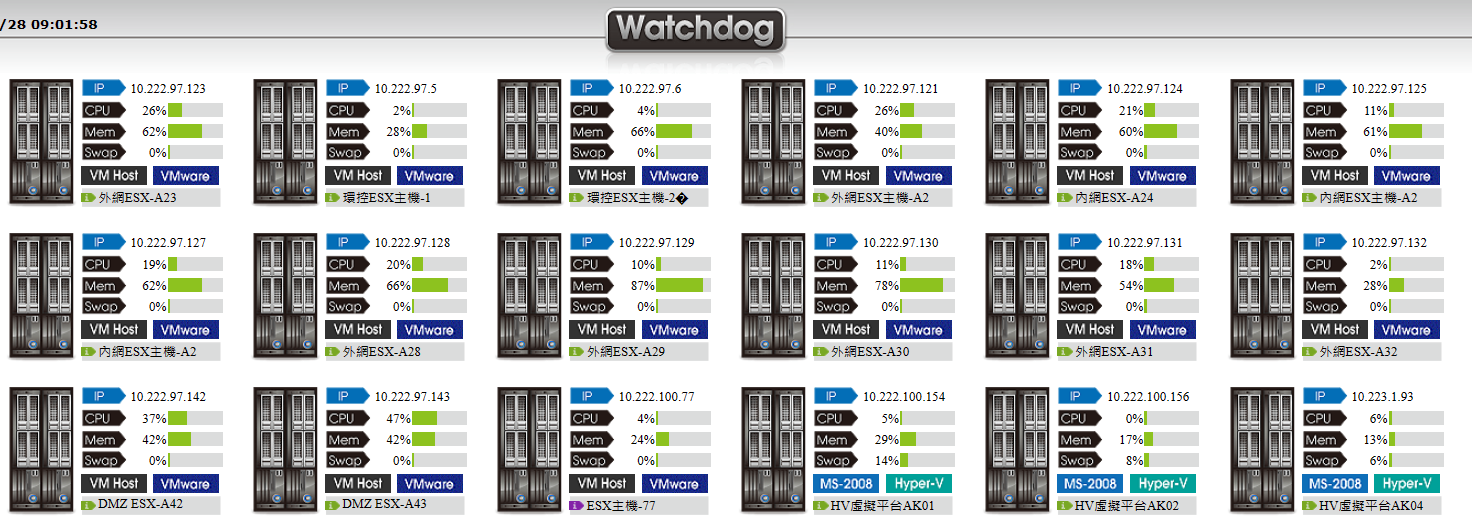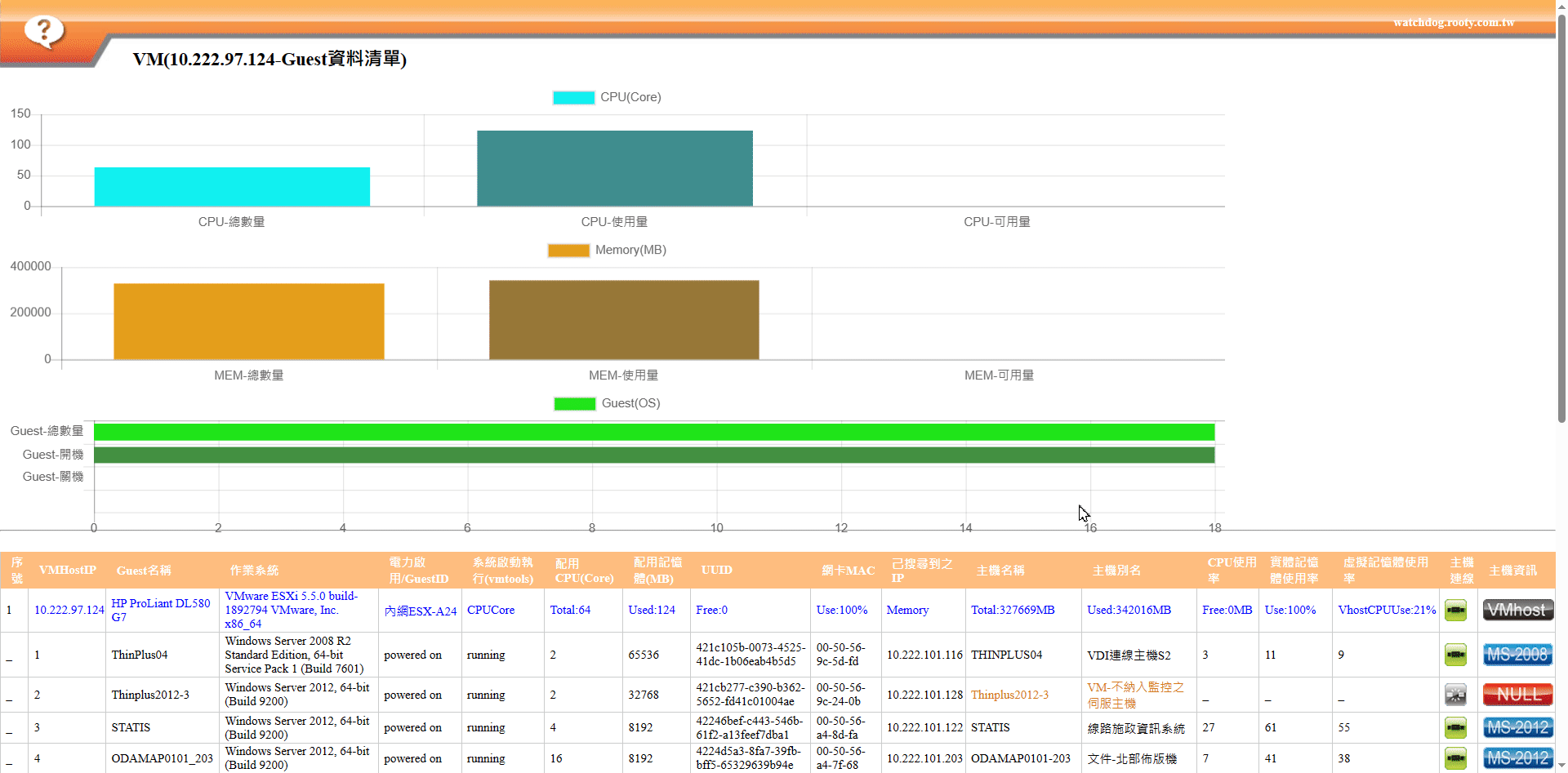 On the WATCHDOG system, it can monitor both virtual hosts (Host) and their Guests simultaneously.