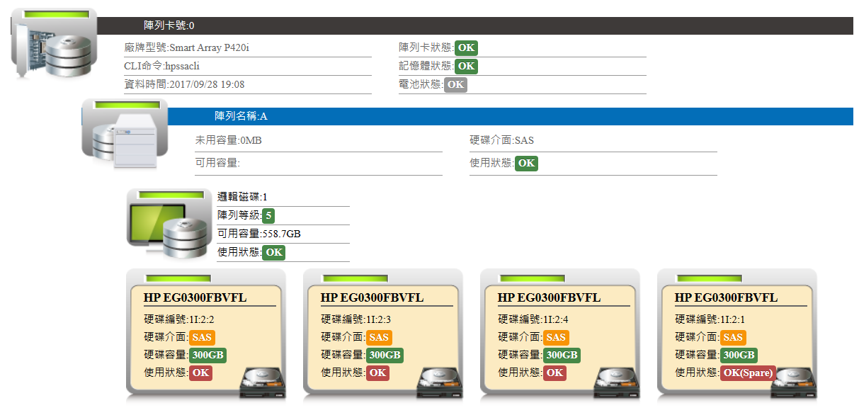 Includes disk array, IPMI information (fan, voltage, temperature, etc.), and Filesystem, etc.
