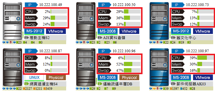 ➢ Alarm thresholds: Different CPU and memory alarm thresholds can be set according to each server's usage characteristics.