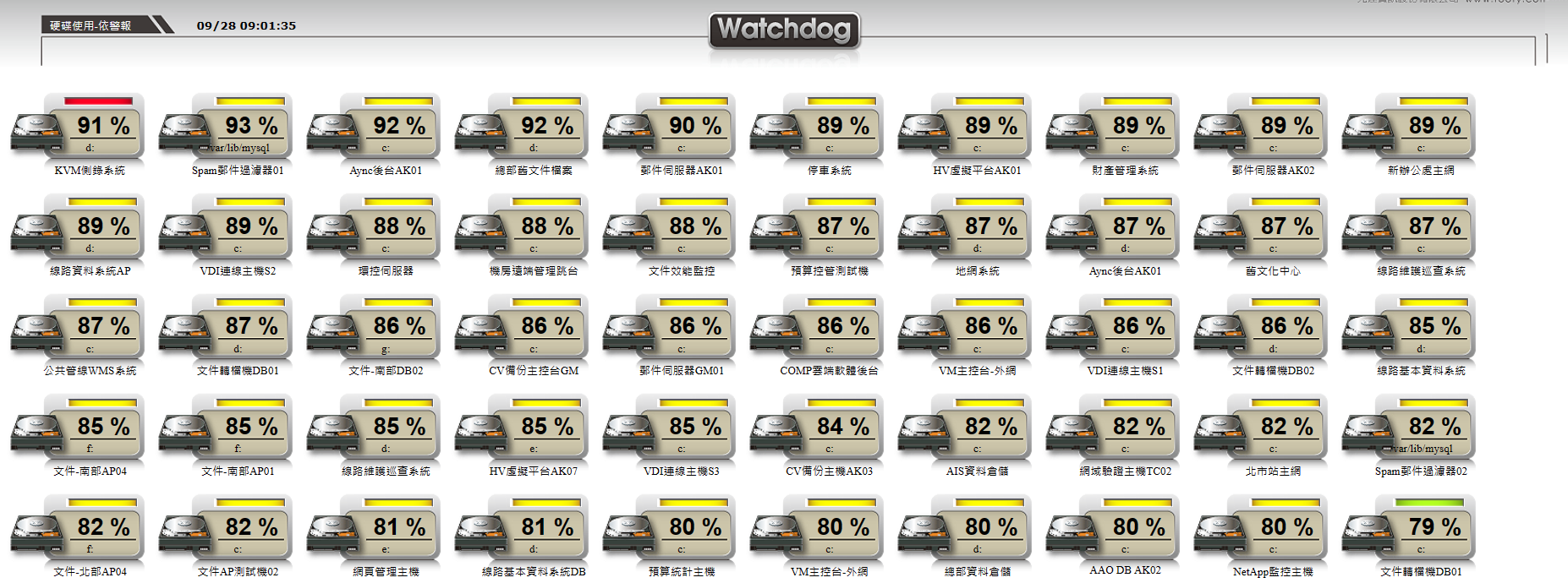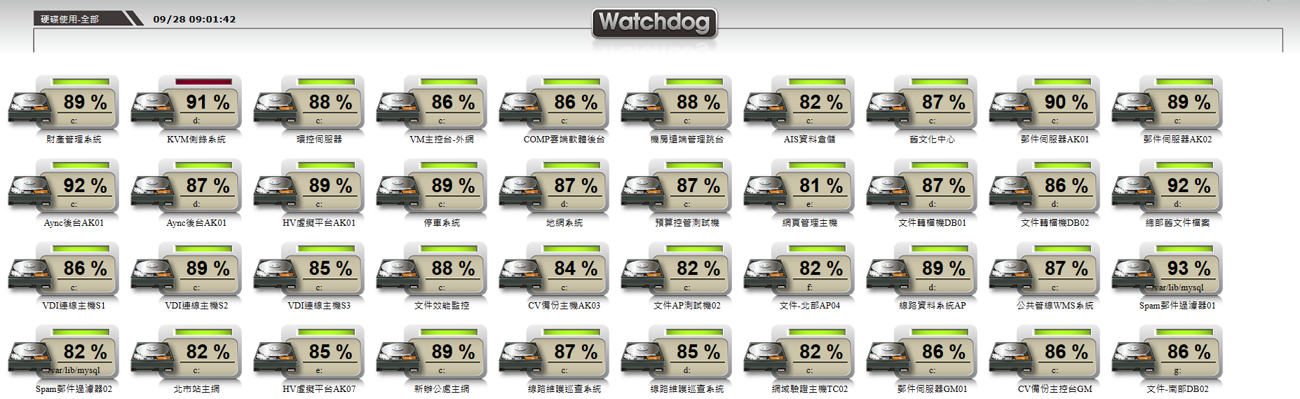 Besides viewing the hard disk on the server page, the WATCHDOG system can also independently view the overall hard disk monitoring interface.