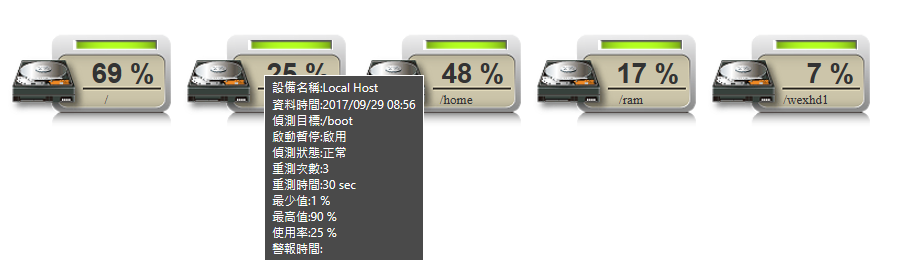 ➢ Monitor the server's file system (Filesystem) or hard disk usage to ensure sufficient storage space and avoid system crashes due to space overflow.
