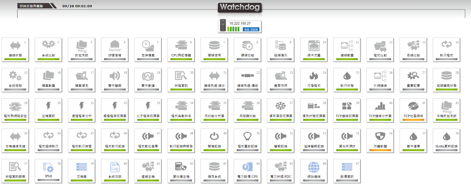When all sub-items under the monitoring item are operating normally, the system interface will display a green indicator light, symbolizing stability;