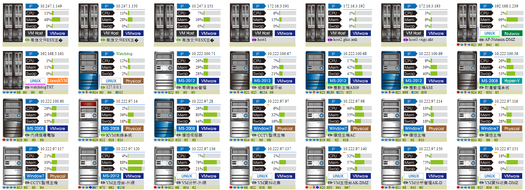 On the homepage of the server monitoring interface, based on different monitoring needs, the displayed information can be divided into three sizes: small, medium, and large. Particularly in the large mode,