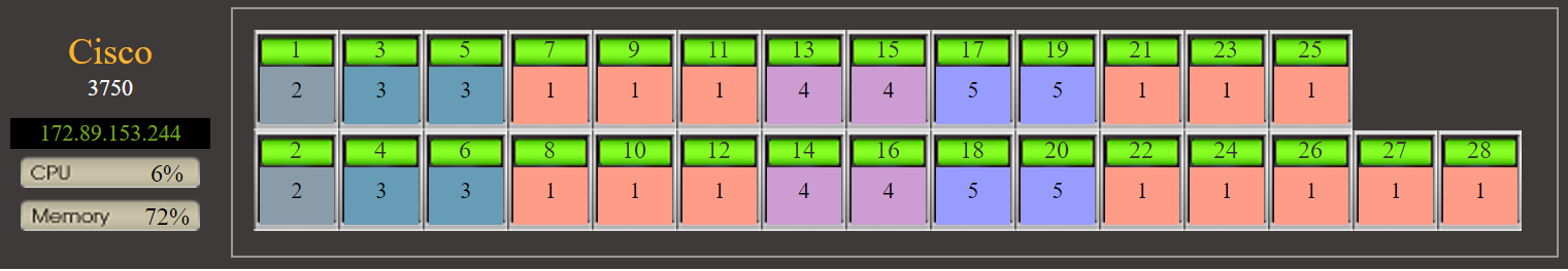 For comprehensive switch monitoring, the system supports displaying key indicators such as VLAN distribution maps, switch port speed distribution maps, and Port status maps.