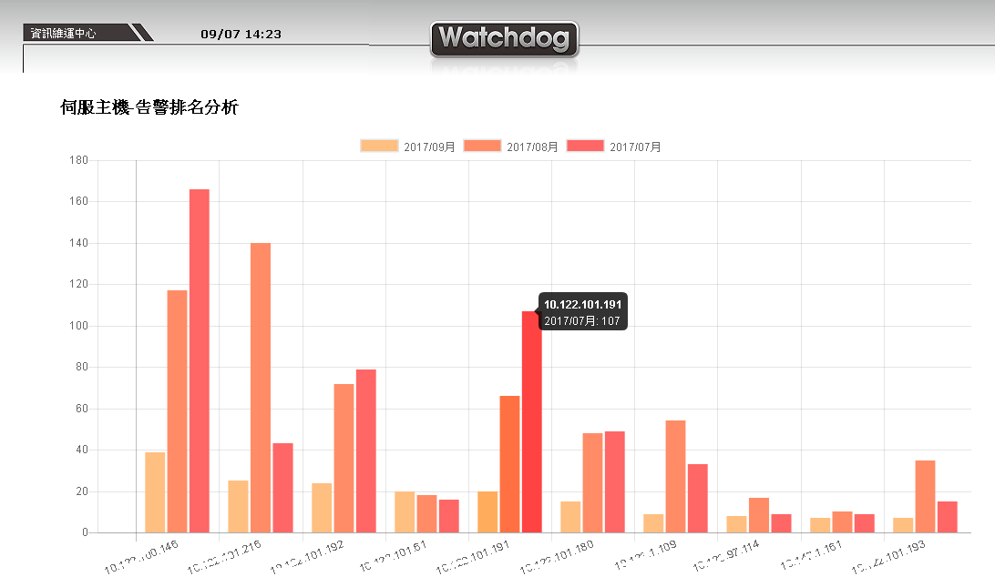 Specifically for servers under each IP address, ranking and comparative analysis of the number of alarms triggered in the past three months.