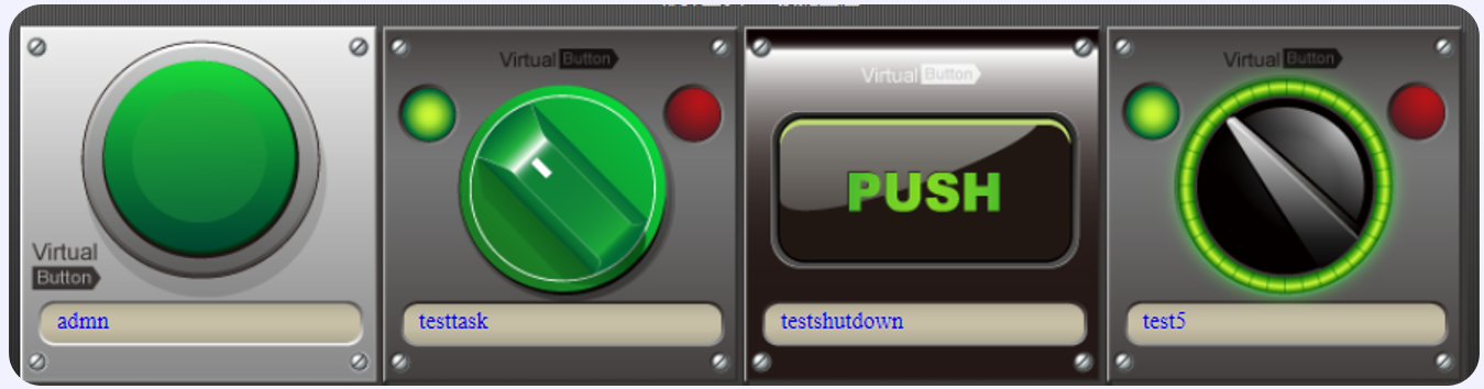 Commands can be executed through virtual buttons, physical buttons, mouse clicks, or various digital input (DI) triggers. Examples include one-key shutdown and emergency shutdown.